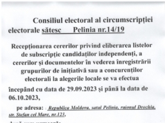 Candidaţii pentru ocuparea funcţiei de conducător al instituţiei de învăţămînt depun personal sau prin reprezentant la Primăria s. Pelinia , bir.2 (secretariat), prin poştă sau prin e-mail (primpelinia@mail.ru), în teremn de 30 zile calendaristice din ziua publicării anunţului, dosarul de concurs, care cuprinde obligatoriu următoarele acte: