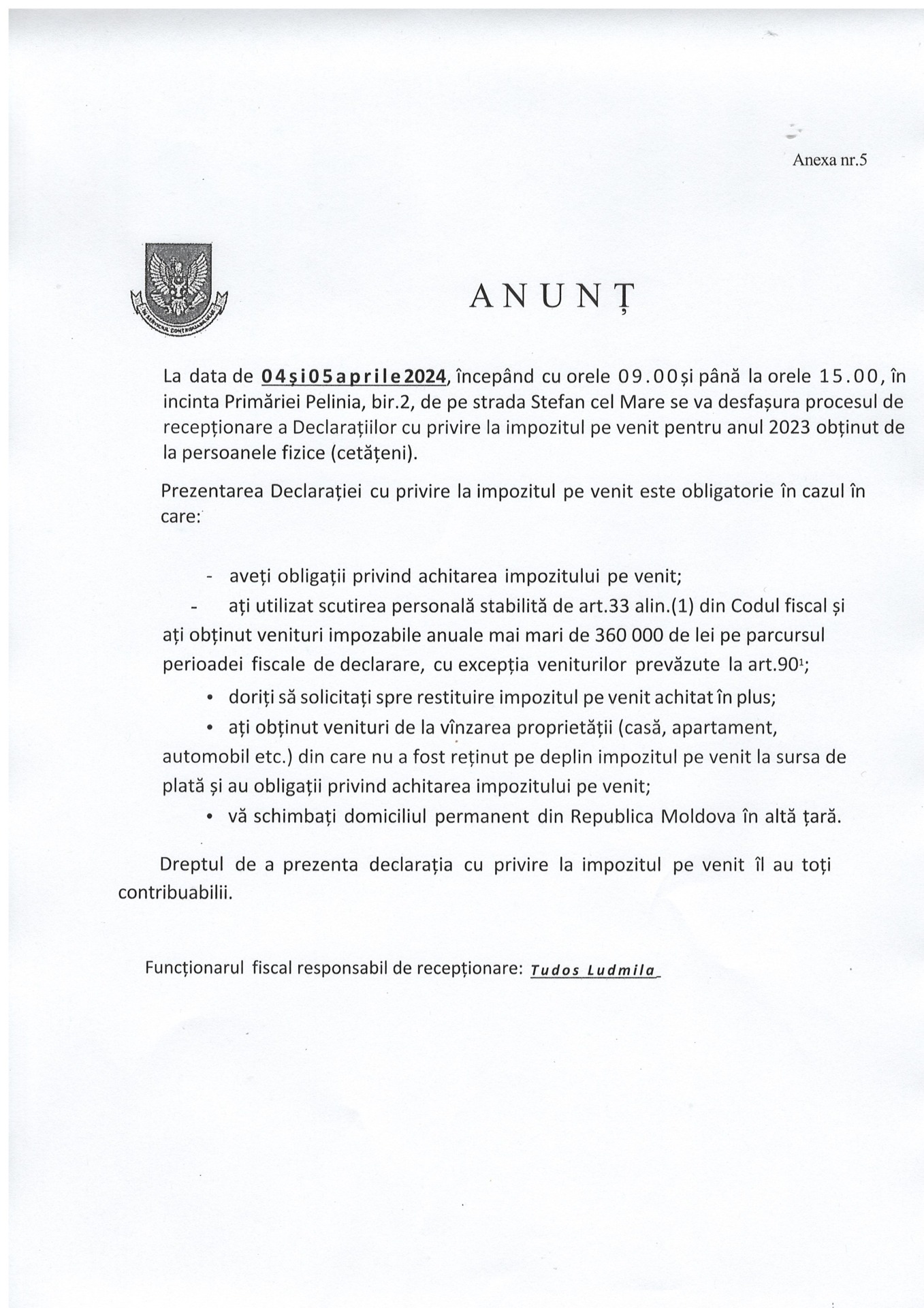 Deciziile și Dispozițiile Primăria Pelinia