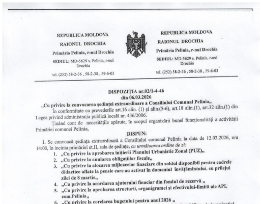 Ședința Extraordinară a Consiliului Comunal Pelinia