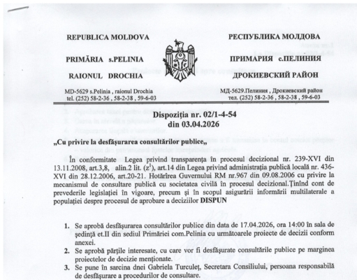 Deciziile și Dispozițiile Primăria Pelinia