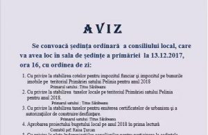 Vă aducem la cunoștință că conform dispoziției primarului nr. 02/1-3-47 din 03 octombrie 2017, se convoacă ședința extraordinară a consiliului local, care va avea...