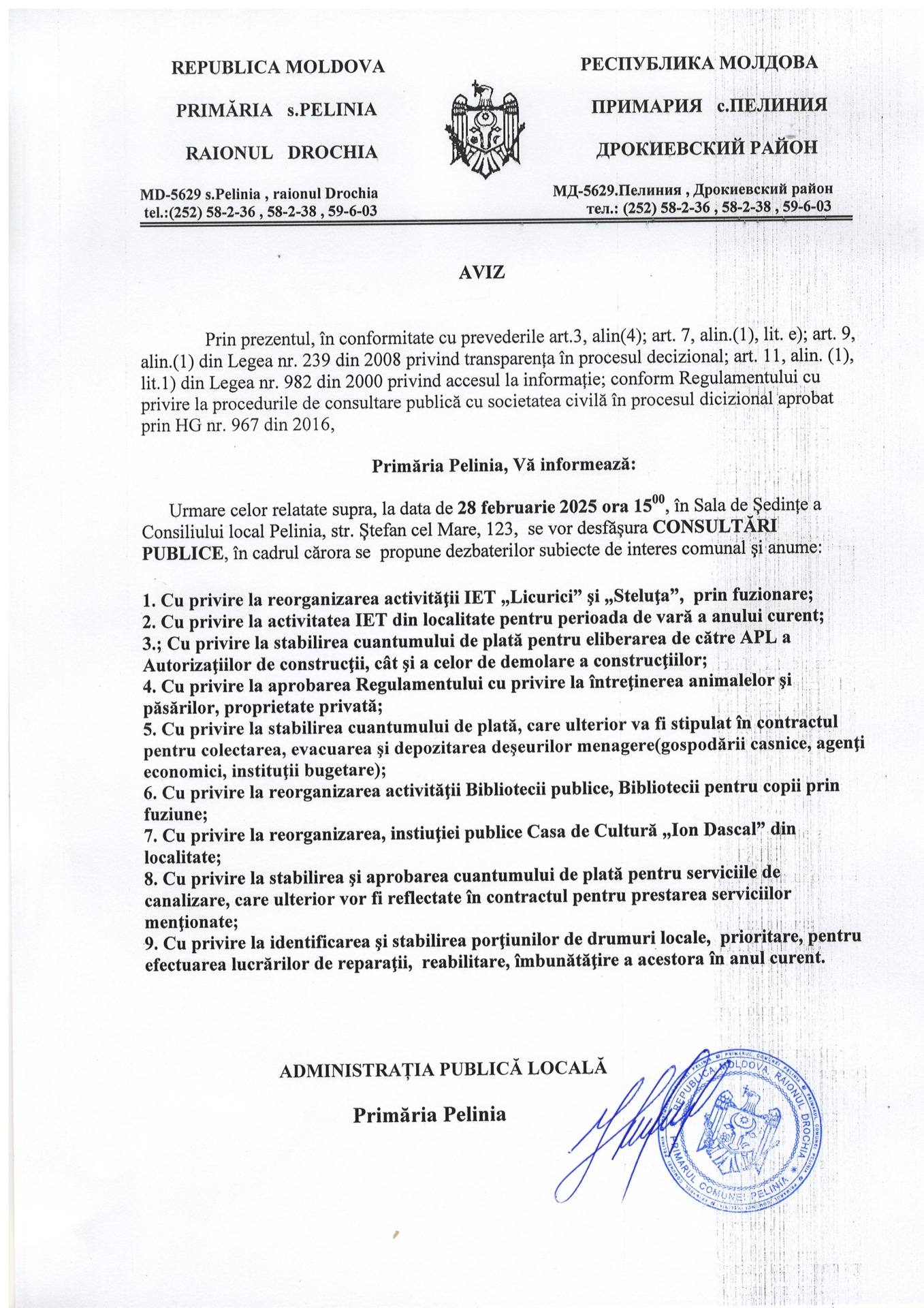 Deciziile și Dispozițiile Primăria Pelinia