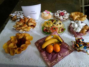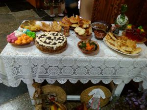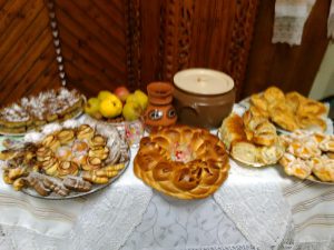 Toţi locuitorii satului Pelinia şi oaspeţii prezenţi la sărbătoare au fost serviţi cu bucate tradiţionale (mămăligă, friptură de porc) care au fost pregătite în aer liber.