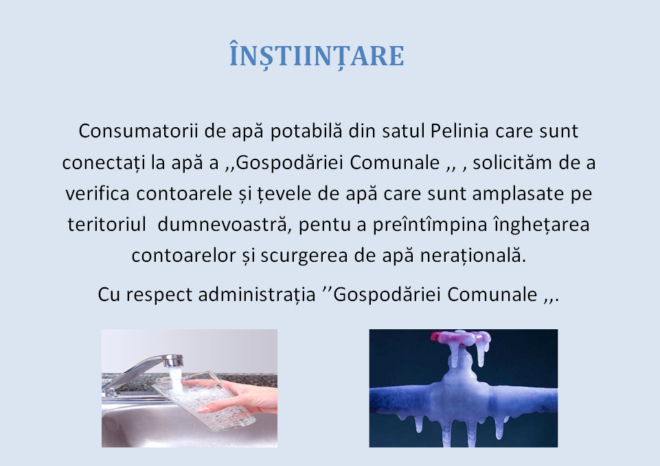Instiintare pentru locuitorii satului Pelinia