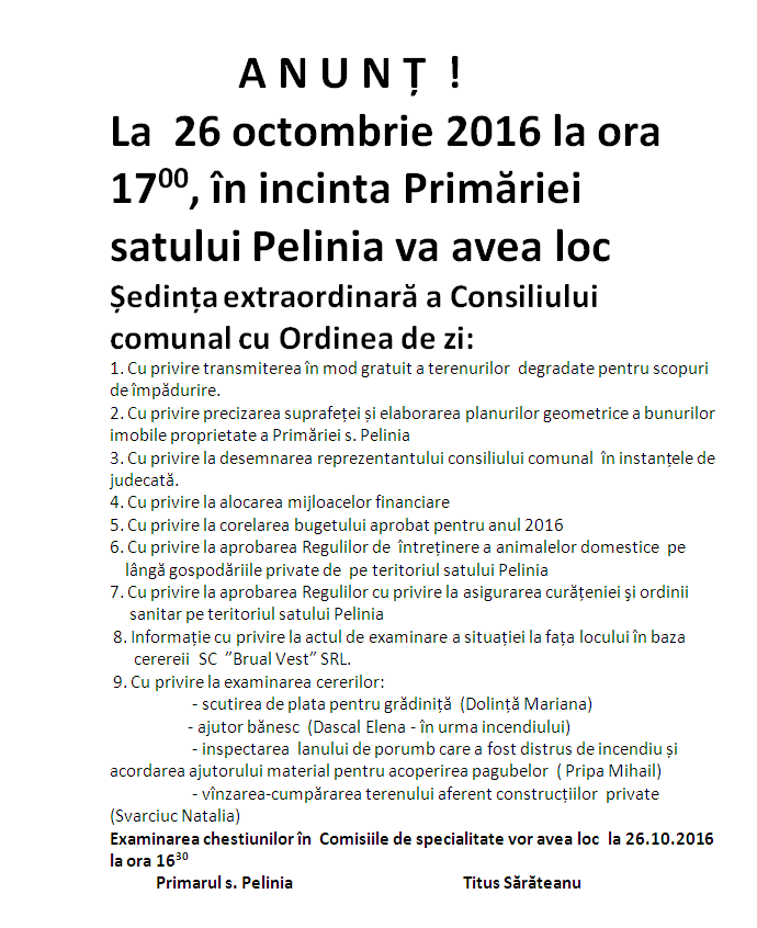 Acasă Noutăți Şedinţa extraordinară din 26.10.2016Şedinţa extraordinară din 26.10.201624 octombrie 2016132DISTRIBUIȚI Facebook Twitter ARTICOLE SIMILAREDE LA ACELAȘI AUTORPlanul de achiziții publice pentru anul 2025ANUNȚSpre Informare